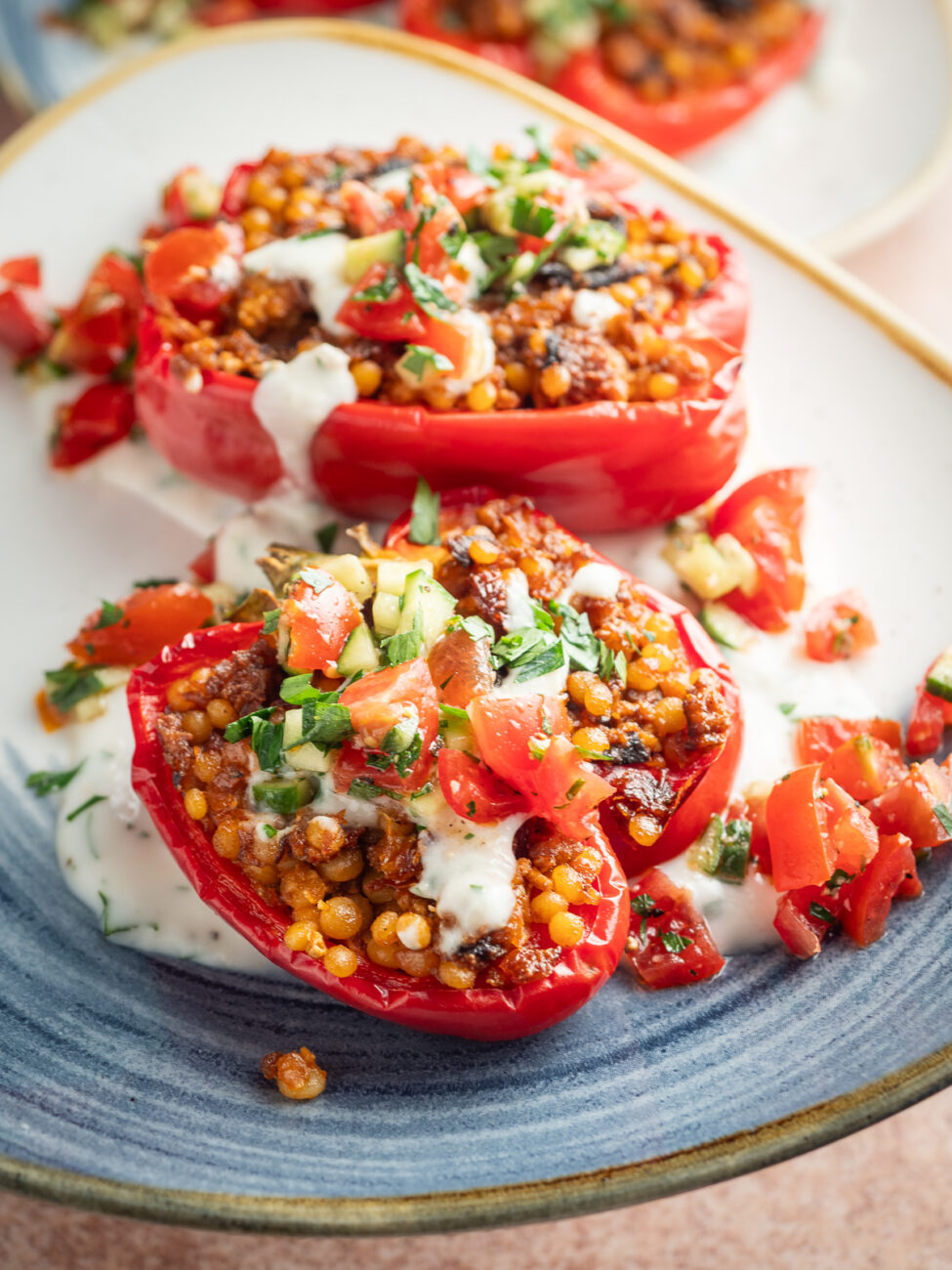 Lato to moment, w którym papryka faszerowana smakuje najlepiej – sezonowa, słodka, soczysta i aż prosi się, by zrobić z niej coś wyjątkowego. To warzywo, które samo w sobie jest pyszne, ale dopiero po nadzieniu i zapieczeniu pokazuje pełnię swojego potencjału. W tym przepisie łączę to, co kochamy w kuchni roślinnej – prostotę, kolor, sezonowe składniki – z elegancją, która sprawia, że danie wygląda jak z najlepszej restauracji.